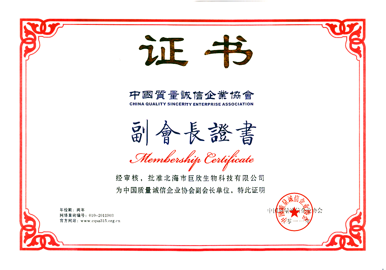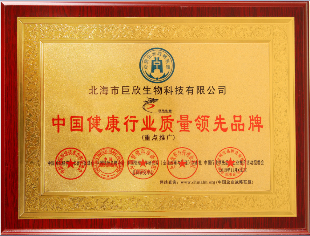 2012年9月5日,北海市巨欣生物科技有限公司被中國(guó)保健協(xié)會(huì)吸納為“中國(guó)保健協(xié)會(huì)團(tuán)體會(huì)員”。中國(guó)保健協(xié)會(huì)副秘書(shū)長(zhǎng)賈亞光親...