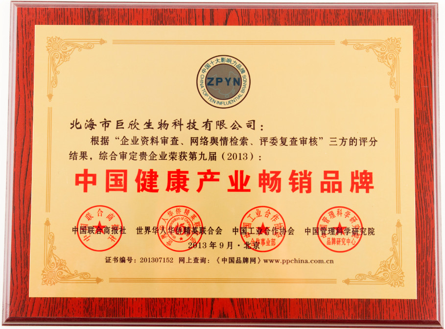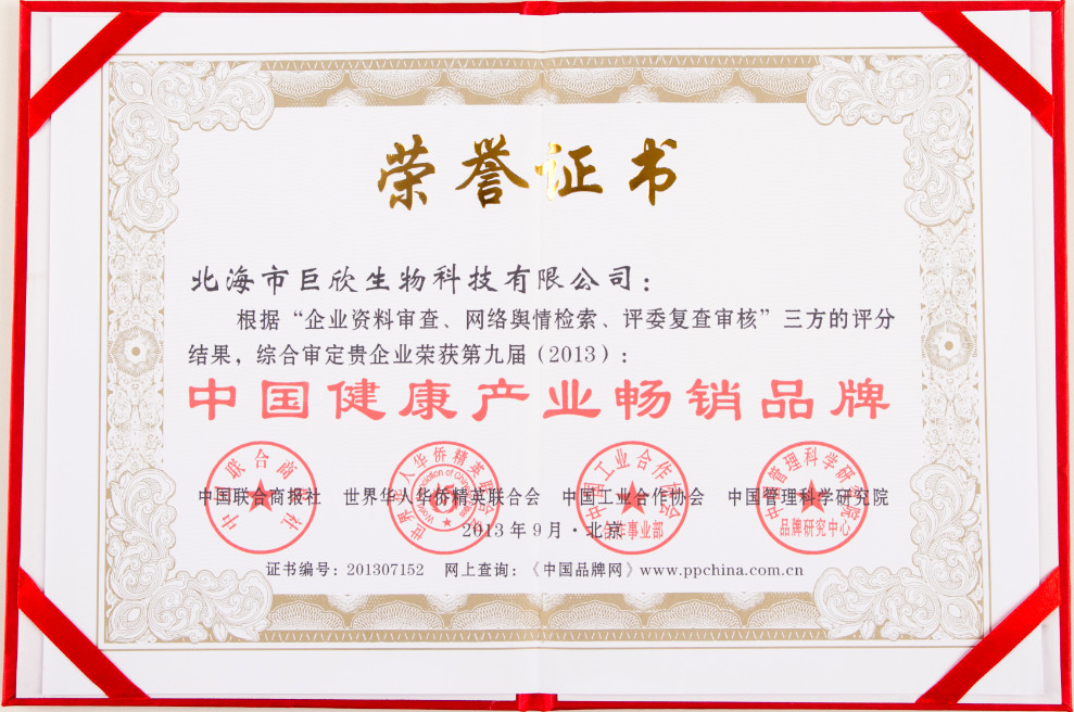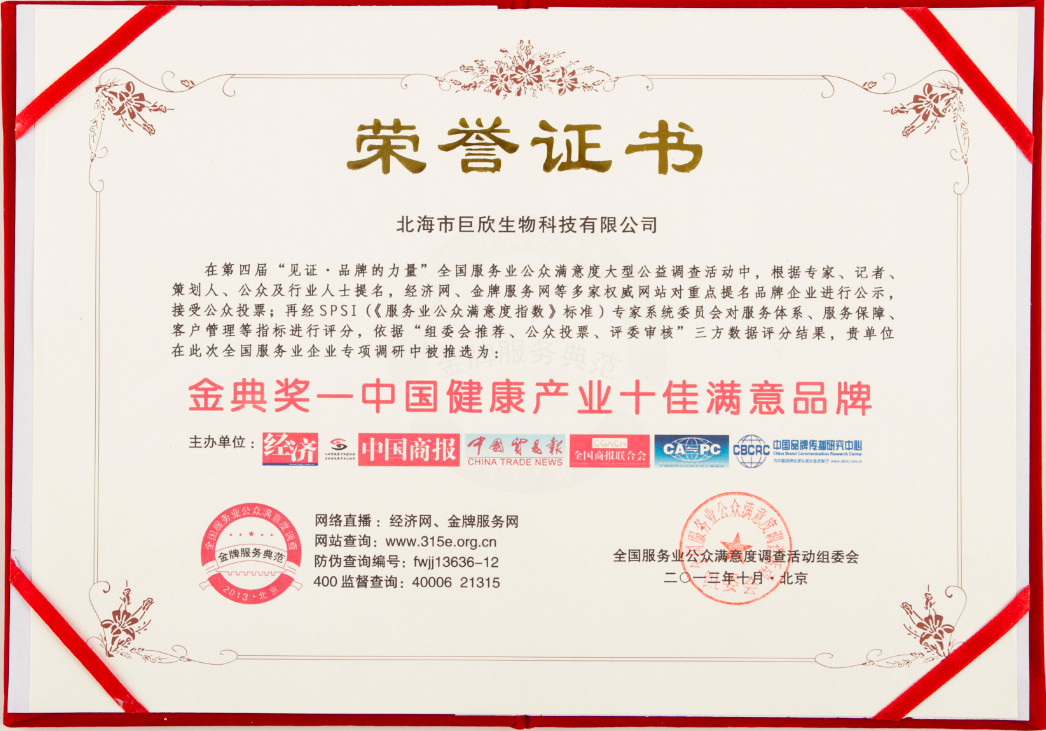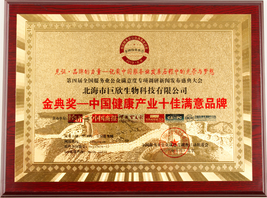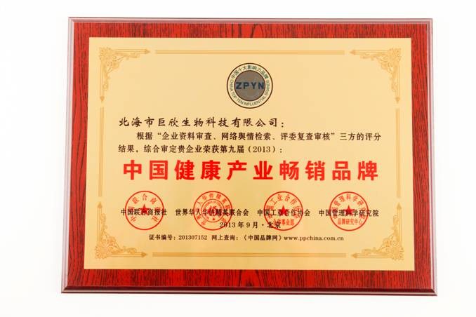 巨欣生物榮獲“中國(guó)健康產(chǎn)業(yè)暢銷(xiāo)品牌”