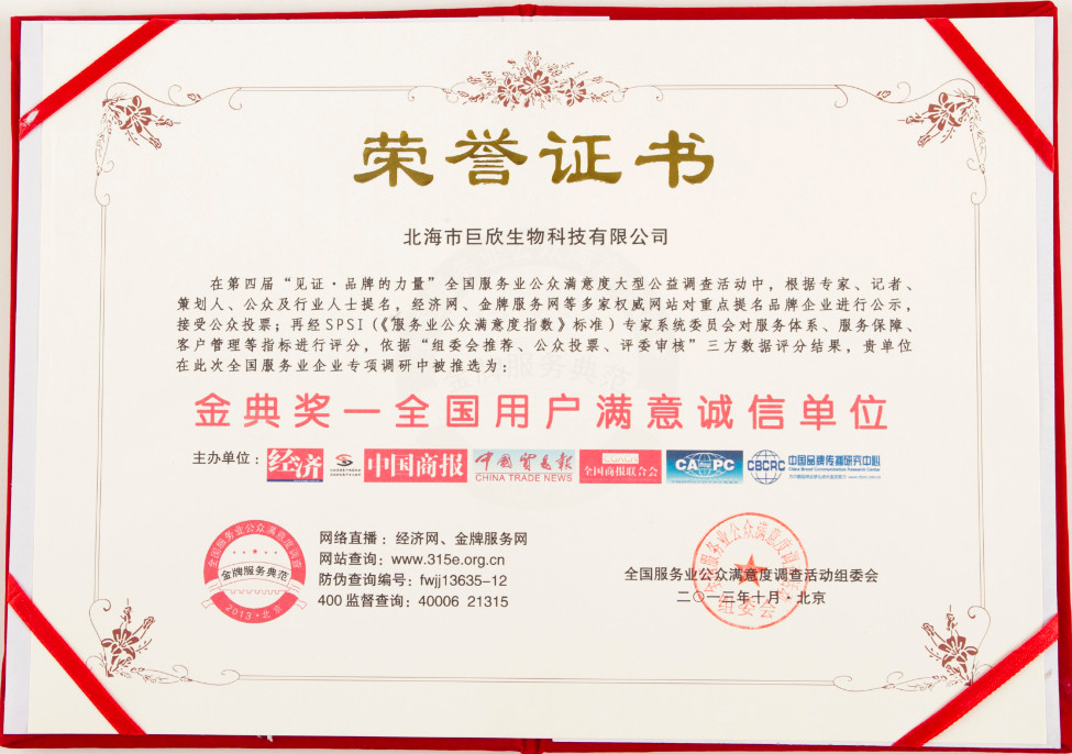 巨欣生物獲全國(guó)服務(wù)公眾滿(mǎn)意度“雙優(yōu)”
