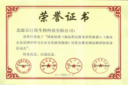 北海市巨欣生物科技有限公司應(yīng)邀出席了“國(guó)家標(biāo)準(zhǔn)《商品售后服務(wù)評(píng)價(jià)體系》《商業(yè)企業(yè)品牌評(píng)價(jià)與企業(yè)文化建設(shè)指南》宣貫會(huì)暨全國(guó)...