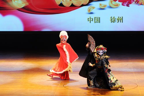晚間,2013年巨欣大家庭迎新春聯(lián)歡晚會在徐州音樂廳盛情開演。聯(lián)歡會上,由徐州歌舞劇院和江蘇省柳琴劇團的演員們?yōu)榫扌兰胰藗兙臏?zhǔn)備的一個又一個精彩絕倫的節(jié)目不時迎來觀眾一陣陣熱烈的掌聲?;盍λ纳涞奈璧浮端苹鸬臒崆椤贰⒏呖亨诹恋呐暘毘都t紅的日子》、讓人拍案叫絕的戲曲絕活雙變臉《變出個紅紅火火》、令人捧腹大笑的小品《算卦》等節(jié)目不斷地刺激著大家的感官,給觀眾帶來了一場愉悅的視覺享受。