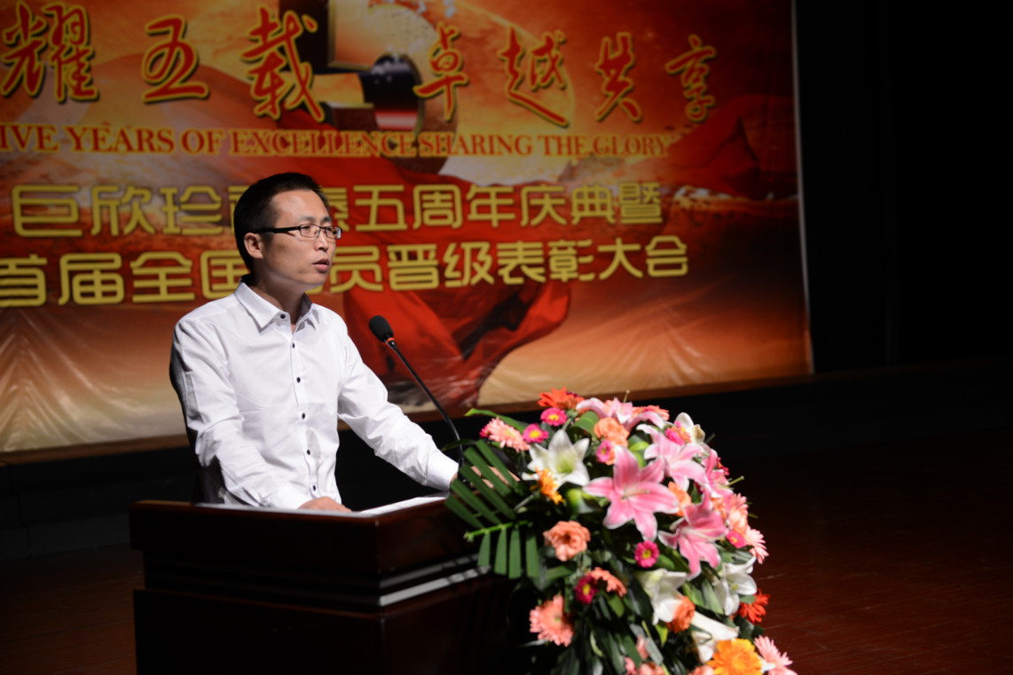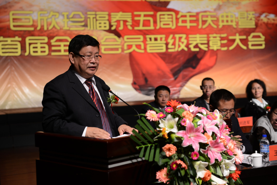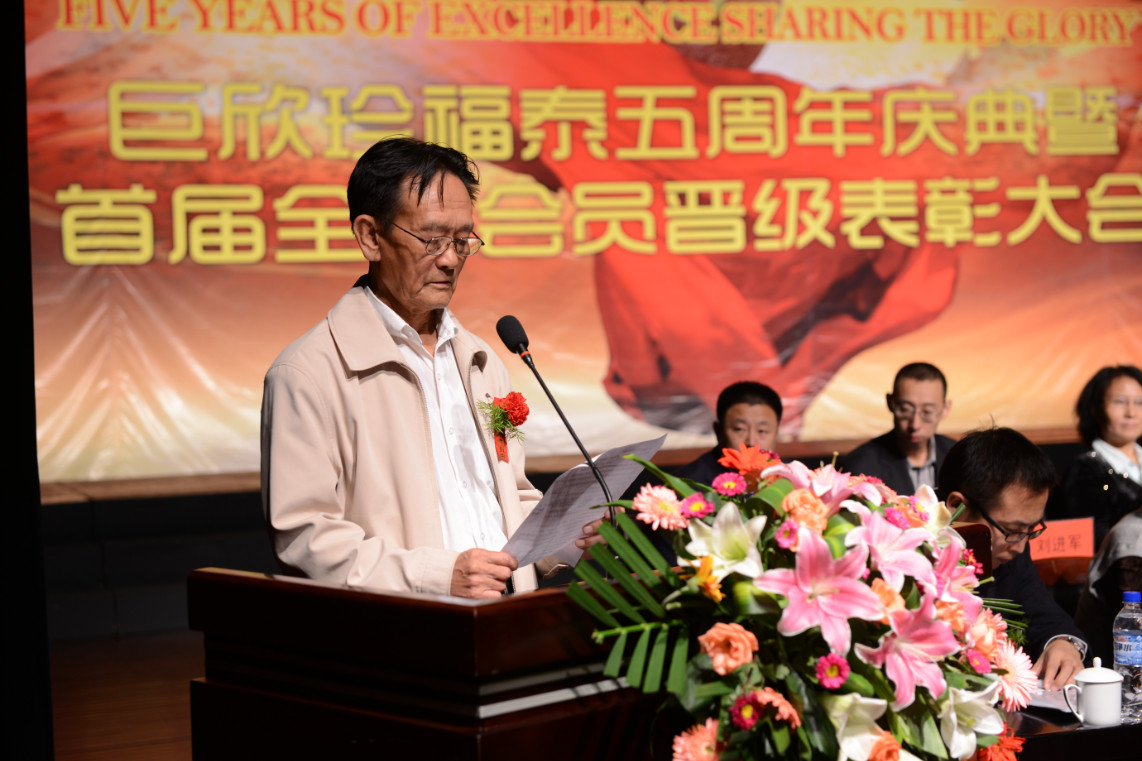 此次大會在朝陽召開是有著深遠的寓意的。朝陽是一座歷史名城,是中華民族文明的發(fā)祥地之一,世界上第一朵花在這里綻放,世界上第一只鳥在這里起飛。五年前,珍福泰這粒種子開始生根發(fā)芽,經(jīng)過大家五年的辛勤耕耘,終于綻放出獨屬于他的一方絢爛。這次大會是巨欣發(fā)展的里程碑,更是巨欣飛躍的新起點。在巨欣家人的精心培育下,我們有理由相信,珍福泰這朵花必將欣欣向榮,并最終結(jié)出累累碩果。