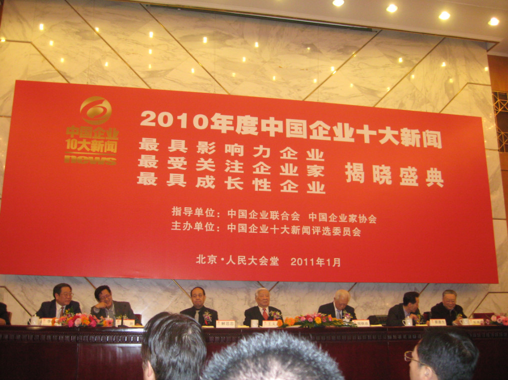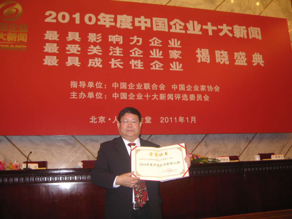 2011年1月16日, “2010年度中國企業(yè)新聞人物推選活動”在京揭曉,張竟董事長被評選為“2010年度中國企業(yè)十大新聞人物”,并由十一屆全國人大常委會副委員長周鐵農(nóng)親自頒獎。
