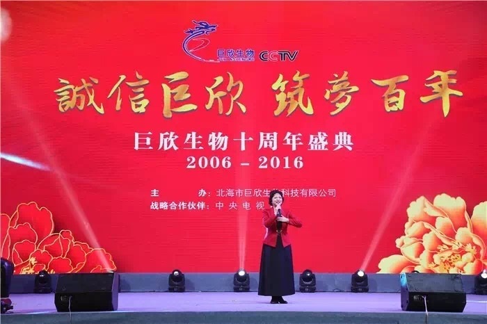 2016年10月16日,北海市巨欣生物科技有限公司在北京雁棲湖國(guó)際會(huì)展中心舉行了隆重的十周年盛典,200多位領(lǐng)導(dǎo)和嘉賓、來(lái)自全國(guó)各地的4000余名巨欣家人們,在祥和喜慶的氣氛中,共同為巨欣慶祝十周歲生日。
