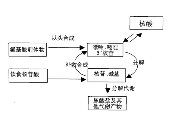 機(jī)體內(nèi)源性合成核苷的主要部位是肝臟,肝臟核酸補(bǔ)救合成酶活性較高,底物足夠時(shí),主要通過(guò)補(bǔ)救途徑合成核酸,攝入外源性核酸,可增加補(bǔ)救途徑核酸生成量并反饋一直從頭合成途徑而起節(jié)能作用并減輕肝臟的負(fù)擔(dān)。